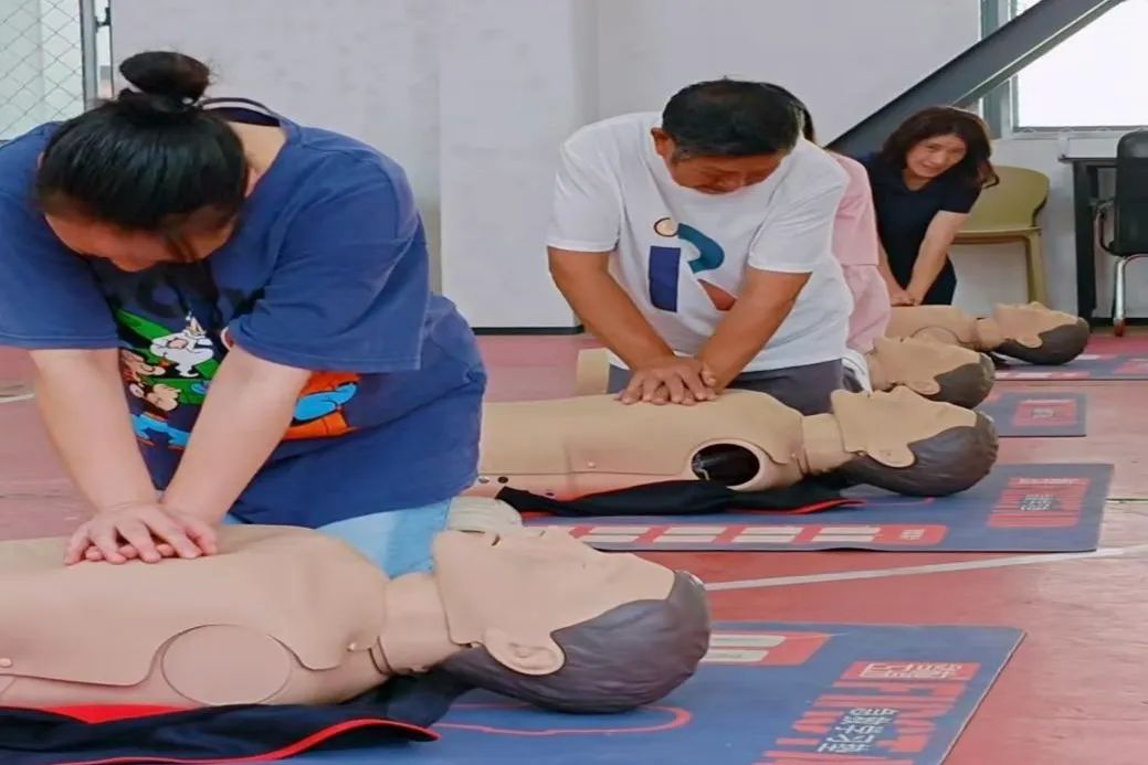 活动现场,专业教官首先用通俗易懂的语言讲解防溺水知识,随后又现场演示了溺水施救技巧。演示结束后,活动设置了实践环节。孩子们在教官的指导下,认真学习按压模拟人的胸部、清理口鼻等基础操作,虽然动作略显稚嫩,但都学得格外专注;家长们则更注重操作的规范性,仔细模仿教官的动作要领,反复练习心肺复苏的按压频率和深度,遇到疑问及时向教官请教,现场学习氛围十分浓厚。